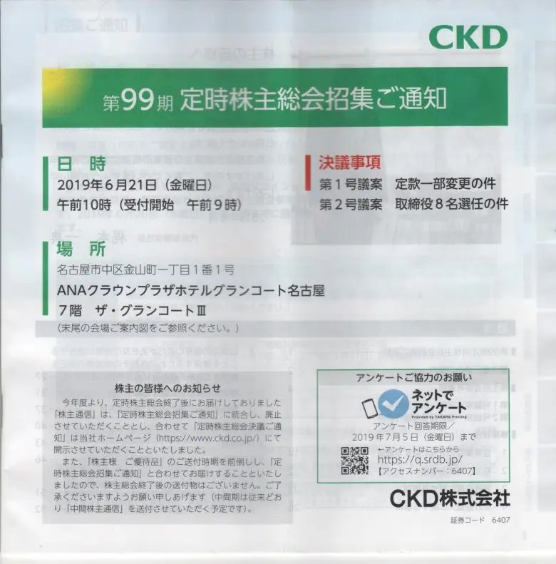 2019年6月9日 / 最終更新日時 : 2019年6月9日 shizuyan CKD定時株主総会招集通知2019 001FacebookXBlueskyHatenaCopyコメントを残す コメントをキャンセルメールアドレスが公開されることはありません。 ※ が付いている欄は必須項目ですコメント ※名前 ※ メール ※ サイト 次回のコメントで使用するためブラウザーに自分の名前、メールアドレス、サイトを保存する。