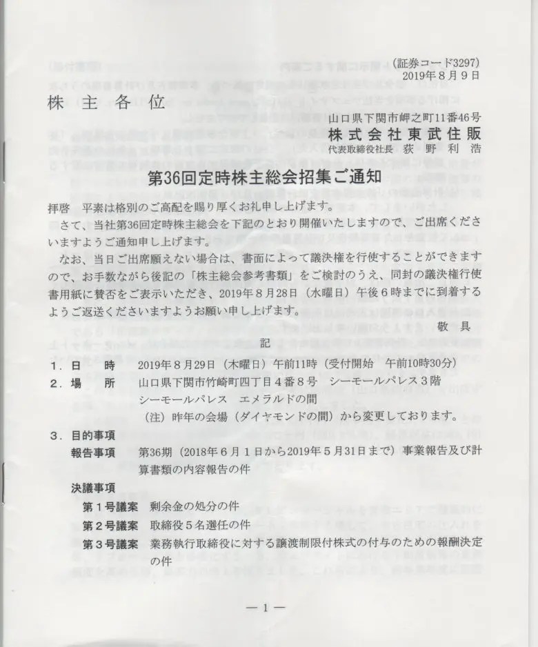 2019年8月27日 / 最終更新日時 : 2019年8月27日 shizuyan 東武住販定時株主総会決議通知2019 001FacebookXBlueskyHatenaCopyコメントを残す コメントをキャンセルメールアドレスが公開されることはありません。 ※ が付いている欄は必須項目ですコメント ※名前 ※ メール ※ サイト 次回のコメントで使用するためブラウザーに自分の名前、メールアドレス、サイトを保存する。