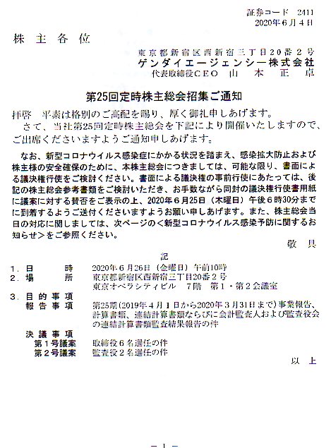 2020年6月8日 / 最終更新日時 : 2020年6月8日 shizuyan ゲンダイエージェンシー定時株主総会2020①FacebookXBlueskyHatenaCopyコメントを残す コメントをキャンセルメールアドレスが公開されることはありません。 ※ が付いている欄は必須項目ですコメント ※名前 ※ メール ※ サイト 次回のコメントで使用するためブラウザーに自分の名前、メールアドレス、サイトを保存する。