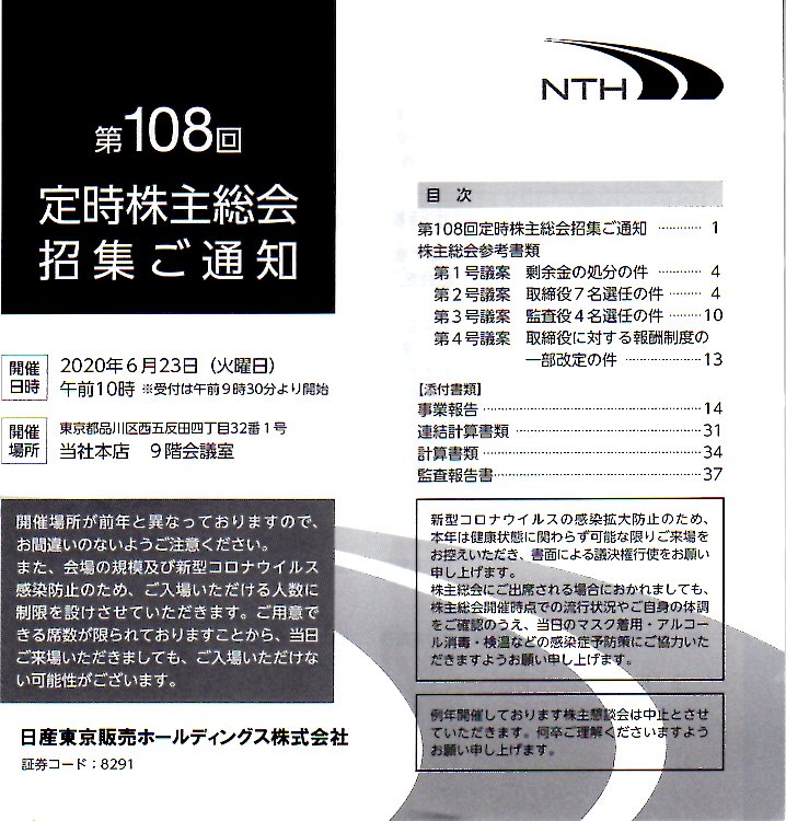 2020年6月10日 / 最終更新日時 : 2020年6月10日 shizuyan 日産東京販売2020定時株主総会通知①FacebookXBlueskyHatenaCopyコメントを残す コメントをキャンセルメールアドレスが公開されることはありません。 ※ が付いている欄は必須項目ですコメント ※名前 ※ メール ※ サイト 次回のコメントで使用するためブラウザーに自分の名前、メールアドレス、サイトを保存する。