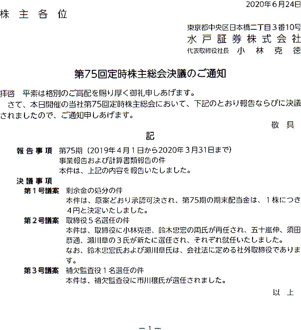Back to 水戸証券(8622)より決議通知、配当金通知とうちゃこ