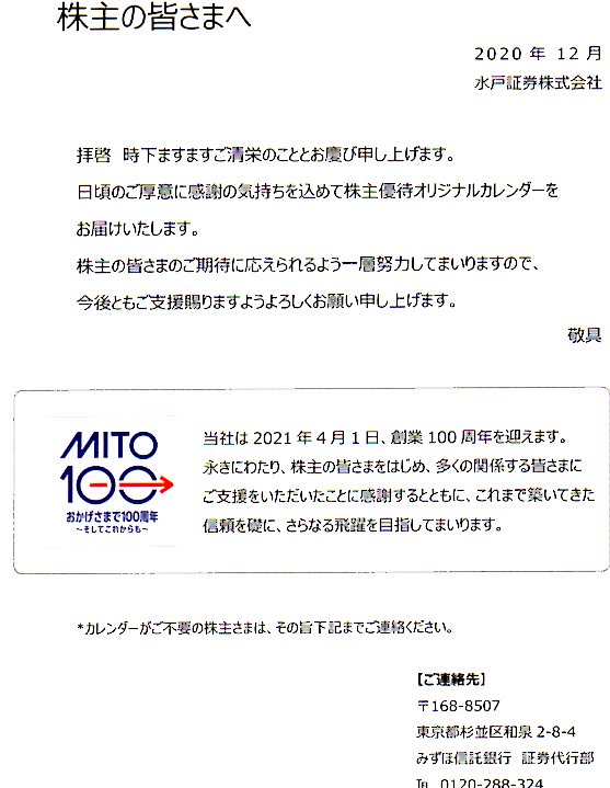 2020年12月6日 / 最終更新日時 : 2020年12月6日 shizuyan 水戸証券2020株主優待①FacebookXBlueskyHatenaCopyコメントを残す コメントをキャンセルメールアドレスが公開されることはありません。 ※ が付いている欄は必須項目ですコメント ※名前 ※ メール ※ サイト 次回のコメントで使用するためブラウザーに自分の名前、メールアドレス、サイトを保存する。
