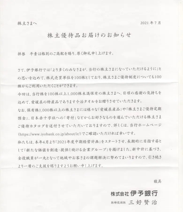 2021年7月31日 / 最終更新日時 : 2021年7月31日 shizuyan 伊予銀行2021優待お知らせ 001FacebookXBlueskyHatenaCopyコメントを残す コメントをキャンセルメールアドレスが公開されることはありません。 ※ が付いている欄は必須項目ですコメント ※名前 ※ メール ※ サイト 次回のコメントで使用するためブラウザーに自分の名前、メールアドレス、サイトを保存する。
